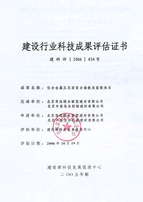 - 2006年已通過建設部科技成果評估,認定為達到“國際先進水平”