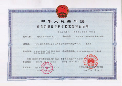 - 2006年榮獲中國第三屆“精瑞住宅新技術優(yōu)秀獎”