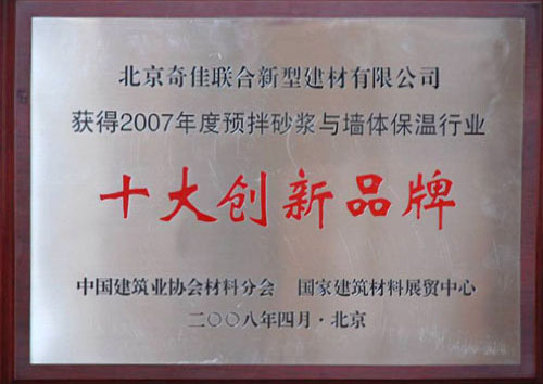- 2007年被列入中國墻體保溫行業(yè)“十大創(chuàng)新品牌”